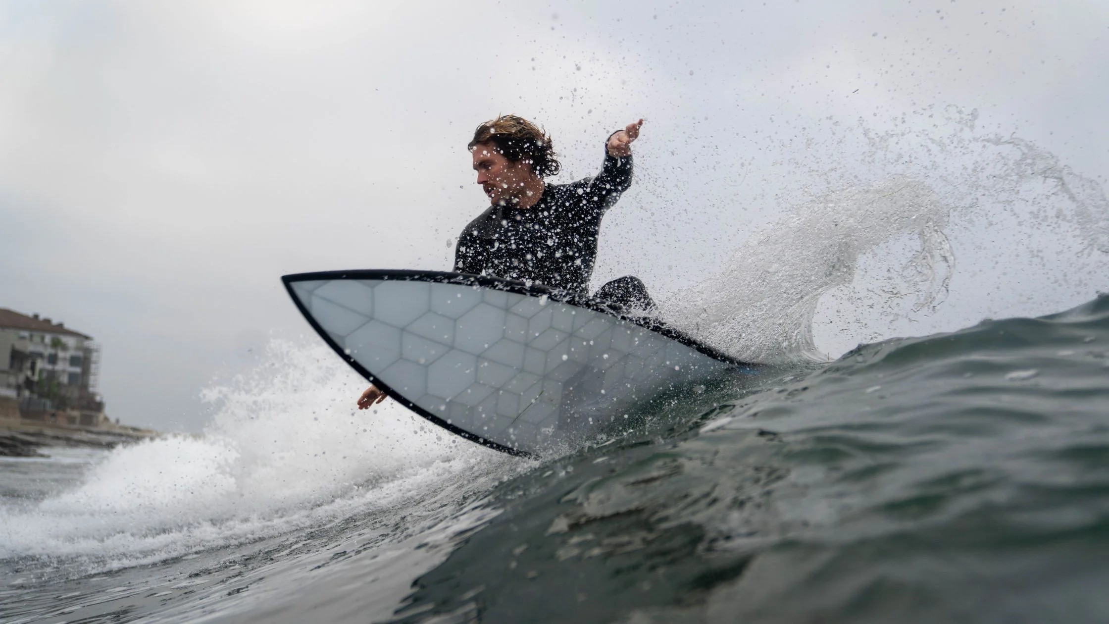 The honeycomb infill, a natural choice for weight-to-stiffness optimization, is their current lattice of choice. But the design freedom of additive manufacturing means that the lattice structure can be adapted for different surfers, waves, or performance goals. In low-stress areas like the nose or behind the fins, the structure can be expanded to save weight while high-load areas, such as under the surfer’s feet, can be reinforced.