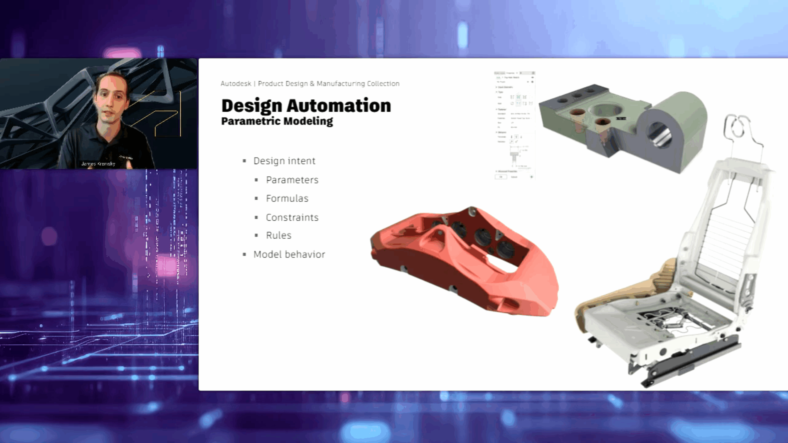 Tedious timelines are an issue on the design side, as well. Autodesk’s senior product marketing manager Jim Byrne and senior technical marketing manager James Krenisky showcased how even without AI, design automation can help engineering teams deliver better products in less time.