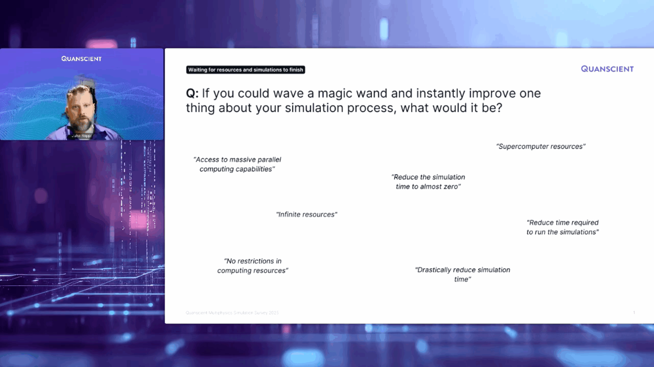 “Almost 85% of people report experiencing waiting times… waiting for licenses, hardware, or cluster capacity, or just waiting for simulations to run,” Riippi revealed.