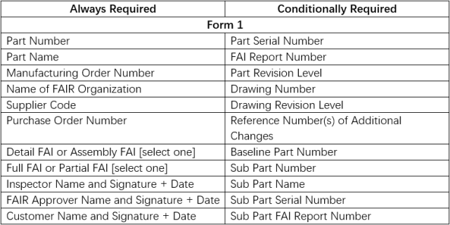 - Form 1 – Part Number Accountability: summarizes the part of the article that is being inspected (the FAI part) and its associated sub-assemblies or detail parts.